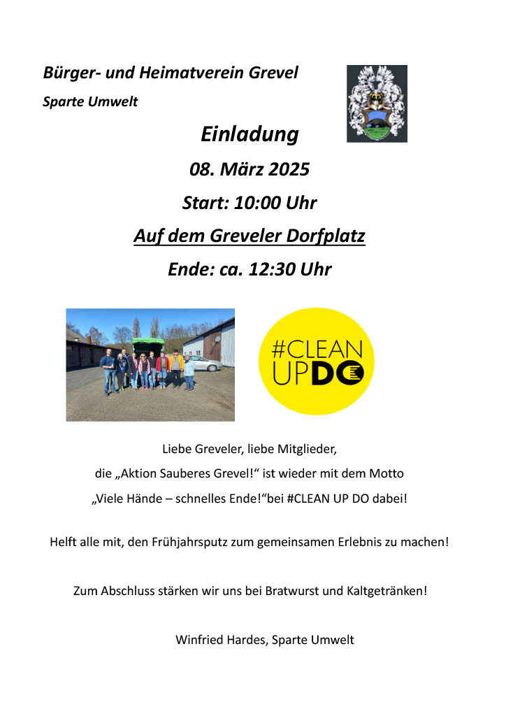 Nur durch den stetigen, ehrenamtlichen Einsatz aller Beteiligten hat der Bürger- und Heimatverein Grevel e.V. eine große Bedeutung für das Dorf Grevel selbst, für die Umgebung und natürlich für die nachbarschaftliche Gemeinschaft erlangt.